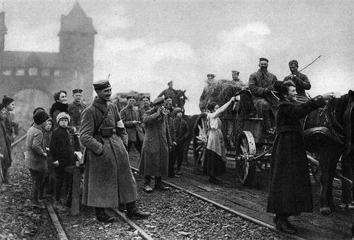 Ehrenpforte am Binger Schlag zum Empfang der heimkehrenden deutschen Truppen